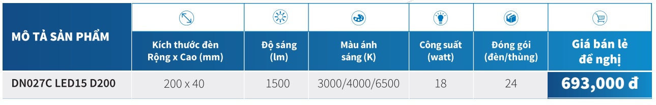 + Ánh sáng : 3000K (Vàng) / 4000K (Trung Tính)/ 6500K ( Trắng )