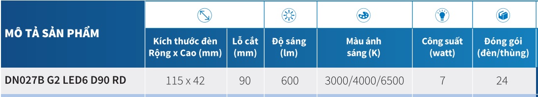 - Mã Hàng : DN027B G2 LED6 D90 RD