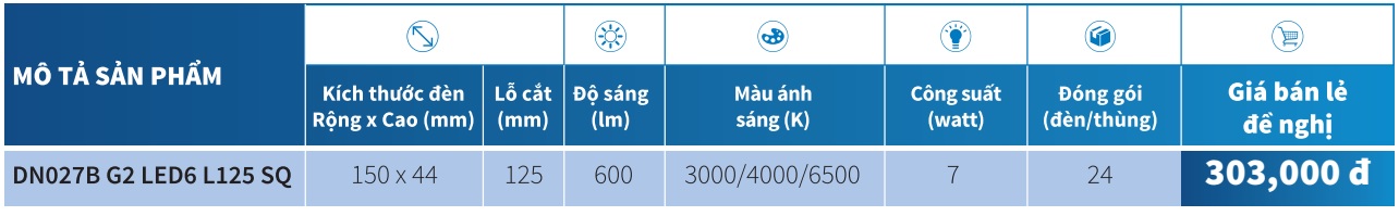 - Mã Hàng : DN027B G2 LED6 L125 SQ