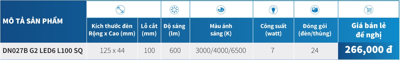 - Mã Hàng : DN027B G2 LED6 L100 SQ